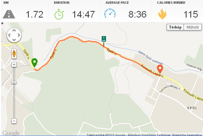 A taktikám most éppen az, hogy az elsőre egyben lefutott km-t növelem, el kell érnem a 2 km-t és jó lenne 8 perces idővel, visszafelé már elég visszakocorászni, ahogy bírok, s elhihetitek, elég is nekem visszajönni…