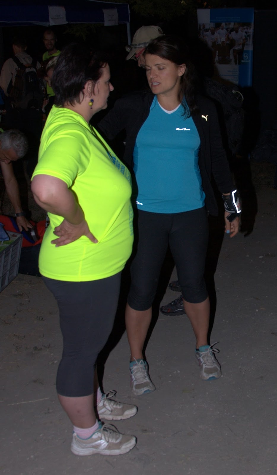 A váltás úgy történt, hoyg az egy darab chipes rajtszámunkra bugyigumit kellett fűzni és azt a derekunkra fűzni (majd váltáskor kibújni belőle, a másiknak meg belebújni), de én mondtam a csajoknak, hogy hadd lehessek már én az etalon, az én derekamon kössük meg, mert ők túl pilinszke testűek, így legfeljebb lecsúszik róluk, de rám legalább rám jön majd. Én azt hittem, macerásabb lesz, de nem. Hiába, a profizmus, ugye.