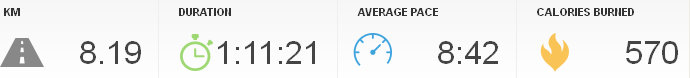 Ma reggel kimentem futni, egy porcikám sem, annyit tudok mondani róla, és ez menetközben sem változott, de azért amikor kiderült, hogy 8,19 km-t lefutottam ezzel a tempóval, mindent elfelejtettem. Szerettem volna 8-at, hiszen a Suhanj-on is ment, de szerettem volna 9 perc/km alá menni és úgy gondoltam, valahogy kiszenvedek magamból egy 8, 58-asat, csak tudok ennyit, nem? Nekem a telefonon a runkeeper csak a km/órát írja ki, én meg alapból sem vagyok jó matekos, nemhogy futás közben azt számolgassam, ez mennyi, van ott nekem egyéb dolgom is: Itthon viszont kiderült, hoyg 8, 42 – na, akkor javultam távban és időben is, igaz, ma hagynék mindent másra.